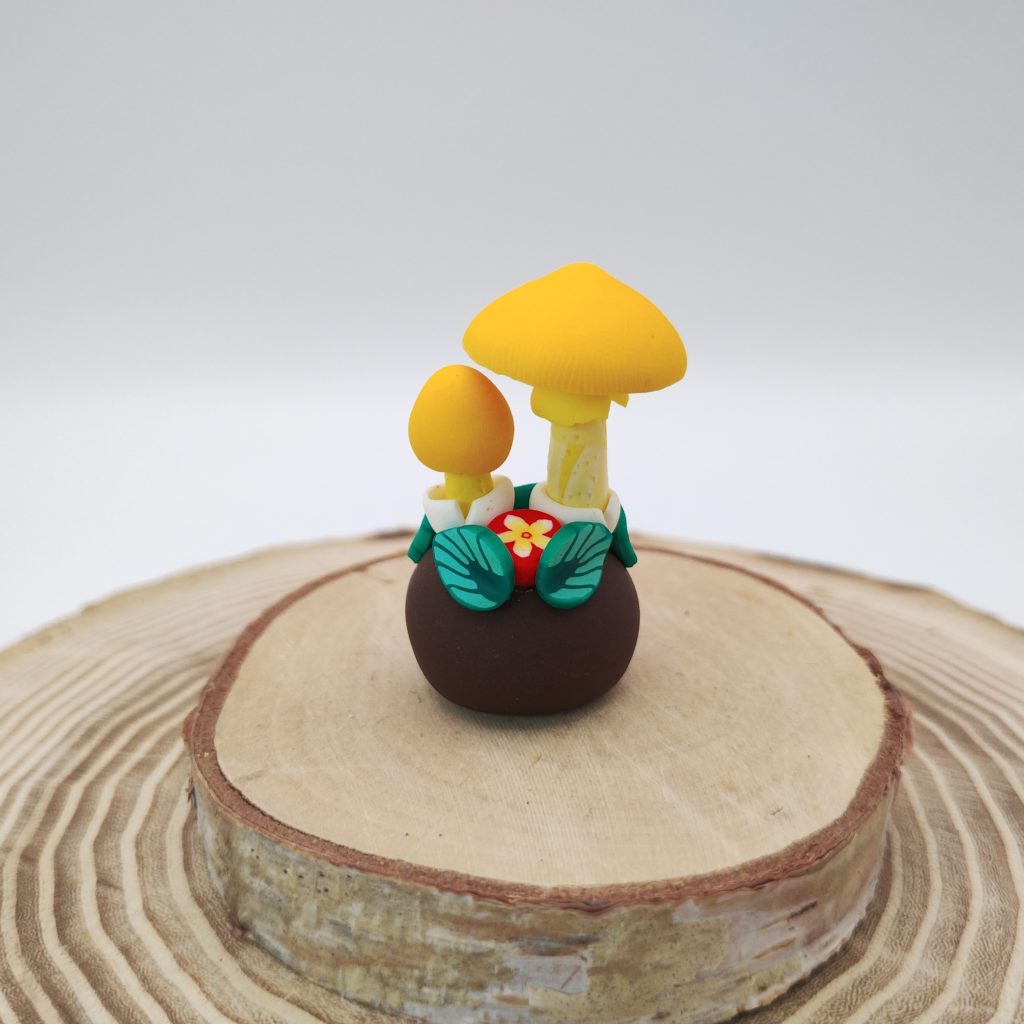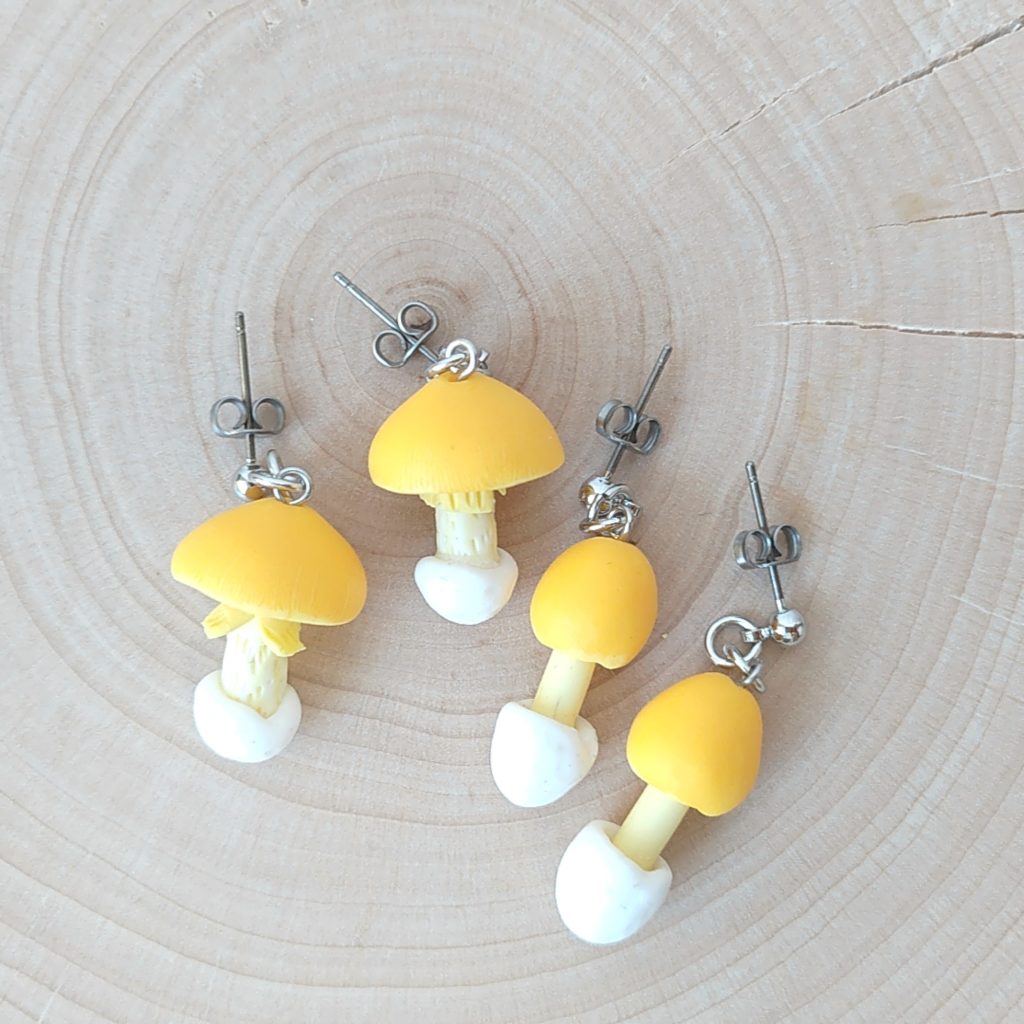 カサは鮮やかな黄色から黄土色。